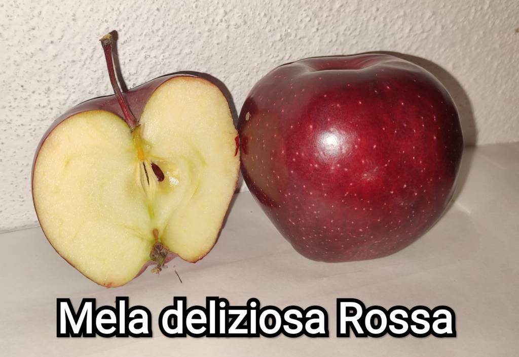 Mela deliziosa rossa o Red Delicious appartiene ad un gruppo di varietà a colorazione rossa, più o meno intensa. Ha la buccia di colore rosso vivo, è liscia e un po’ cerosa. Ha una tipica forma a calice e la polpa di colore bianco crema, croccante, di gusto dolce poco acida, succosa e ricca di fruttosio.