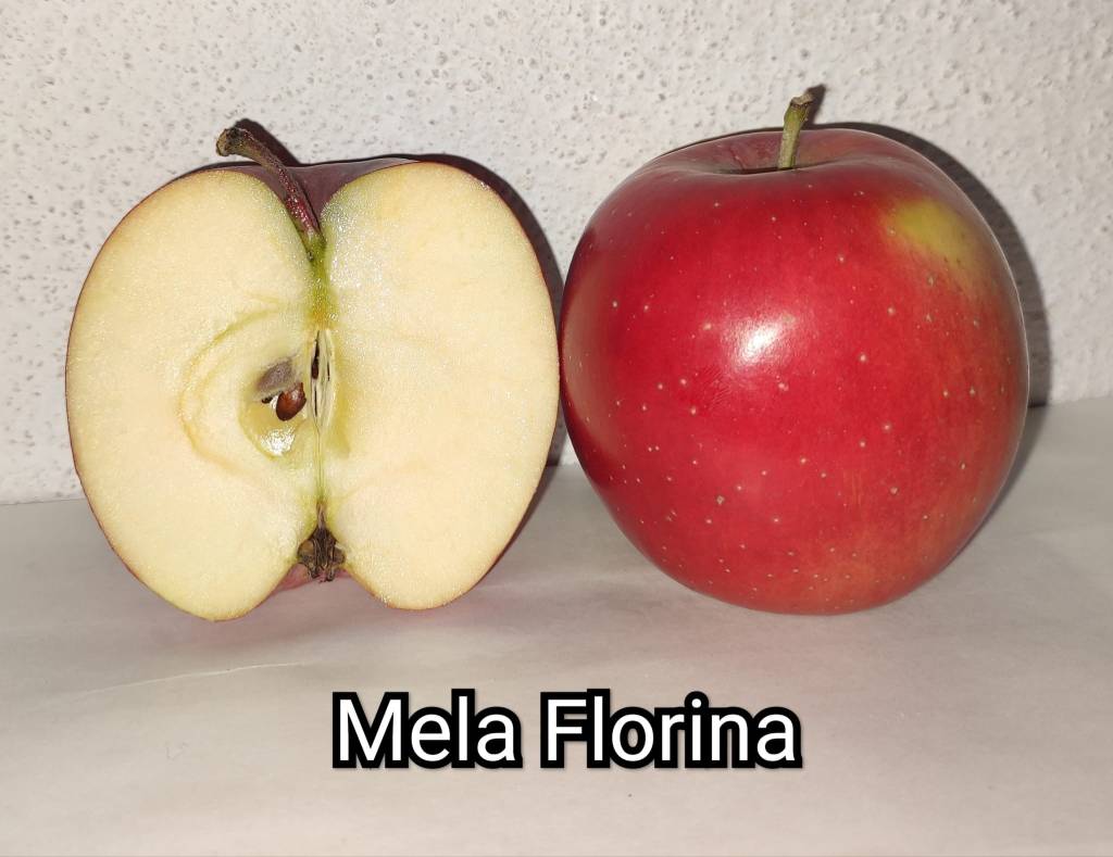 La Florina è stata selezionata da specialisti francesi a metà del XX secolo,è il risultato dell’ incrocio di mele Starking, Golden Delicious, Rum Beauty, Jonathan.Questa mela è di forma cilindrica,di dimensioni abbastanza grandi infatti raggiunge un peso di 110-130 grammi. La buccia è rossa, la polpa è di colore giallo chiaro,di sapore agrodolce. Si contraddistingue per la sua lunga capacità di conservazione.