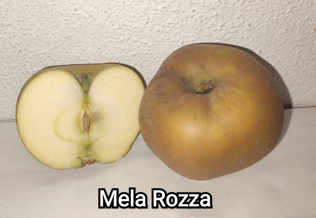 Mela rozza o mela renetta grigia di Torriana o anche “brutta e buona” Frutto di piccole dimensioni, regolare schiacciata alle estremità. Colore della buccia ruvida, color ruggine. La polpa è tenera, grossolana, molto fibrosa insipida alla raccolta ,migliora con la conservazione.